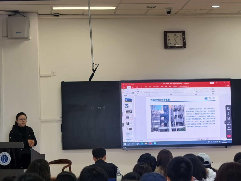 专职辅导员雅丽娜就学生公寓安全卫生综合管理内容进行了介绍,提醒新生要遵守学生公寓管理规定,增强自我安全防范意识,共同营造安全、文明、和谐的寝室环境。